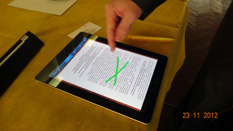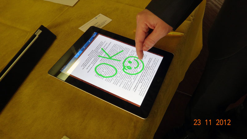 На протяжении всей конференции проходила живая демонстрация прикладного решения «1С:Документооборот» и дополнений к нему. Например, с помощью этого приложения можно управлять задачами «1С:Документооборот» через планшетный компьютер Apple iPad.