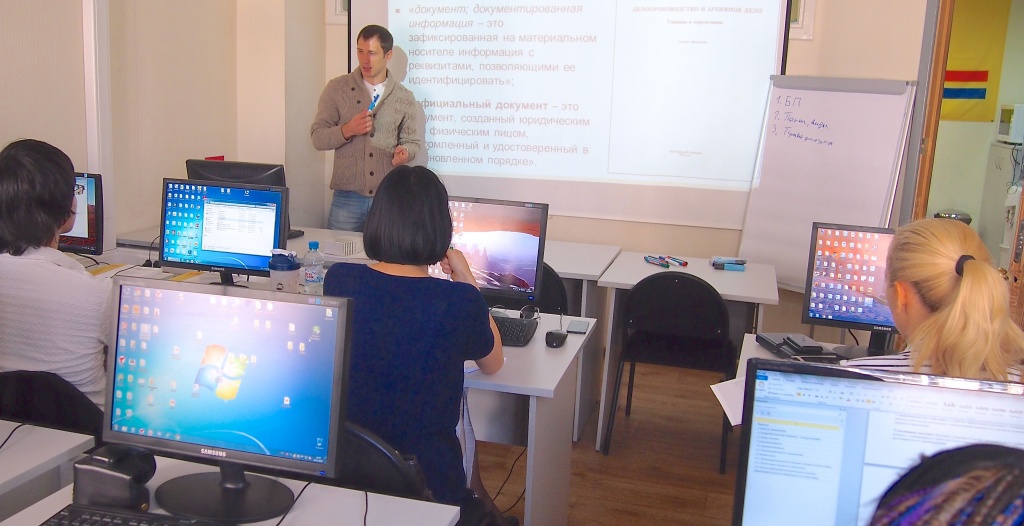На снимке руководитель учебного центра, методолог, руководитель корпоративных проектов Антон Бондарев проводит первый практический семинар "Возможности прикладного решения "1С:Документооборот 8" для организации электронного документооборота" в рамках Учебного центра 1С-КПД.