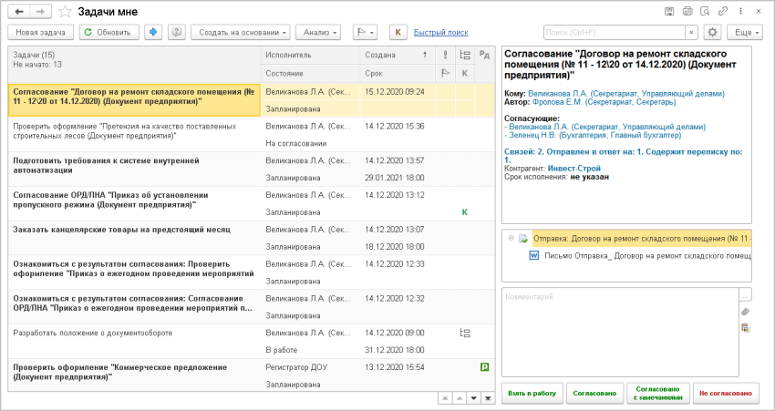 В 1С:Документообороте управление задачами кардинально отличается от распространенной практики использовать для этих целей почту.