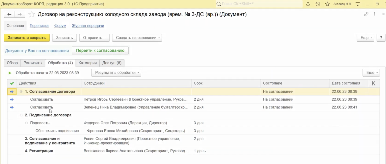 1С:Документооборот обеспечивает полную прозрачность согласований: